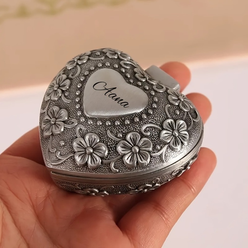 This elegant metal jewelry box features a custom engraved relief, transforming it into a timeless keepsake. Crafted for durability, its intricate design captures light and shadow, adding a touch of sophistication to any dresser.