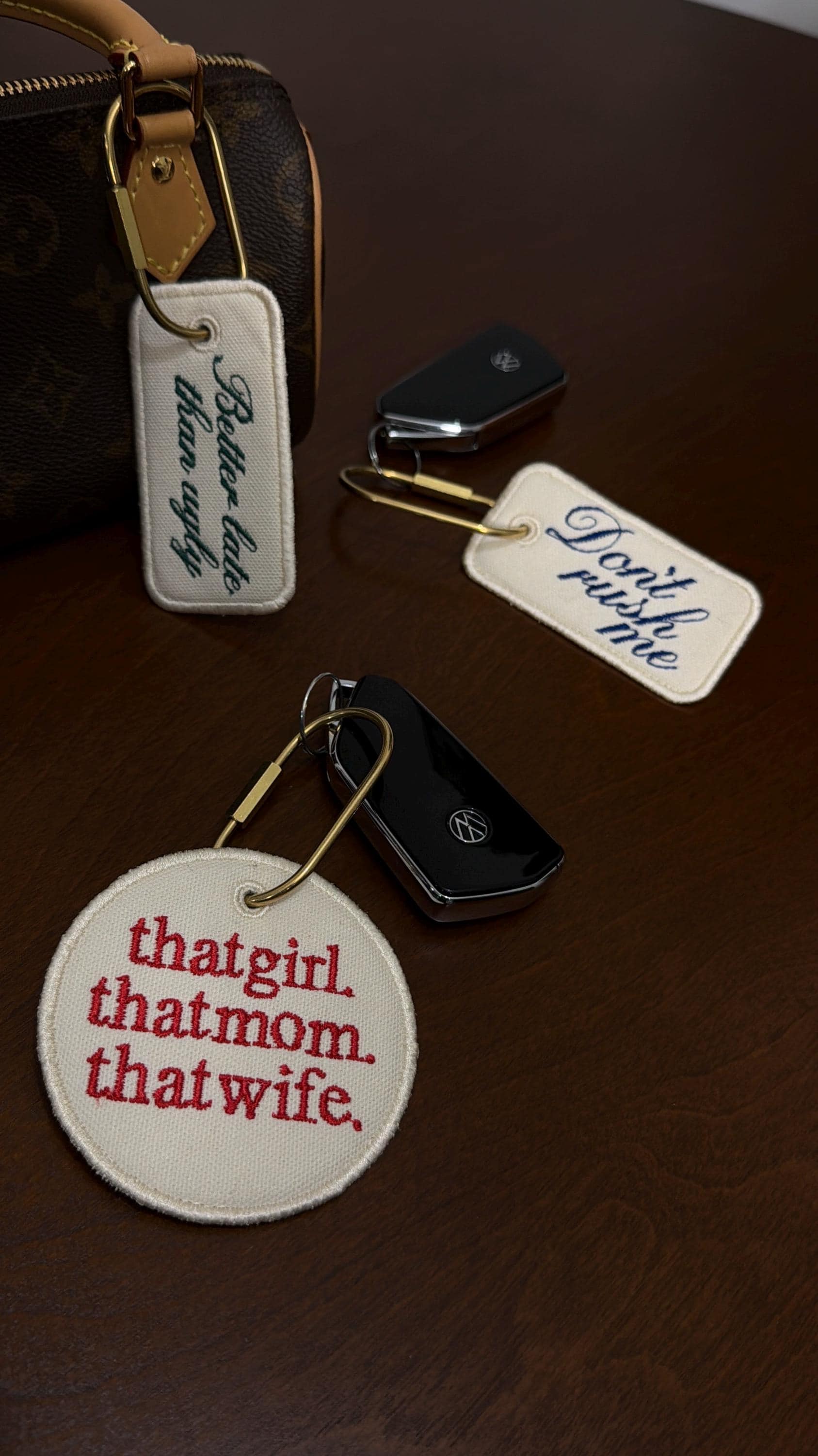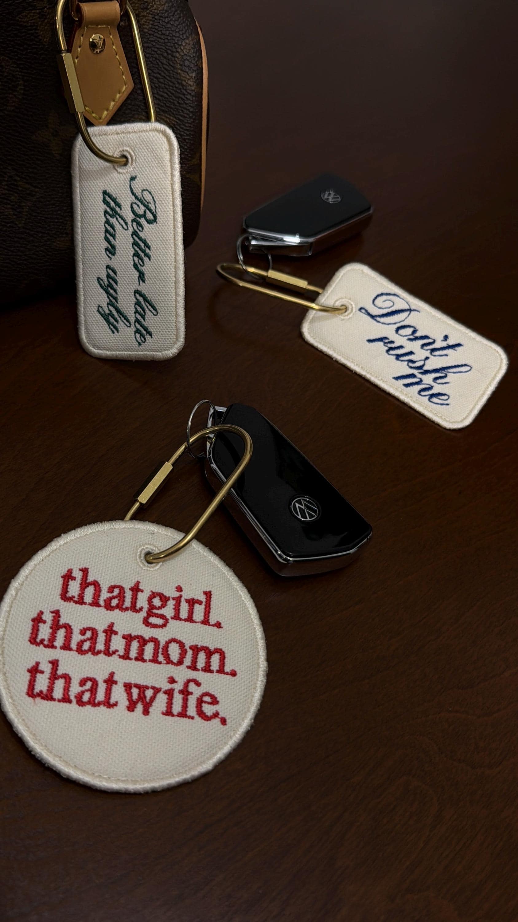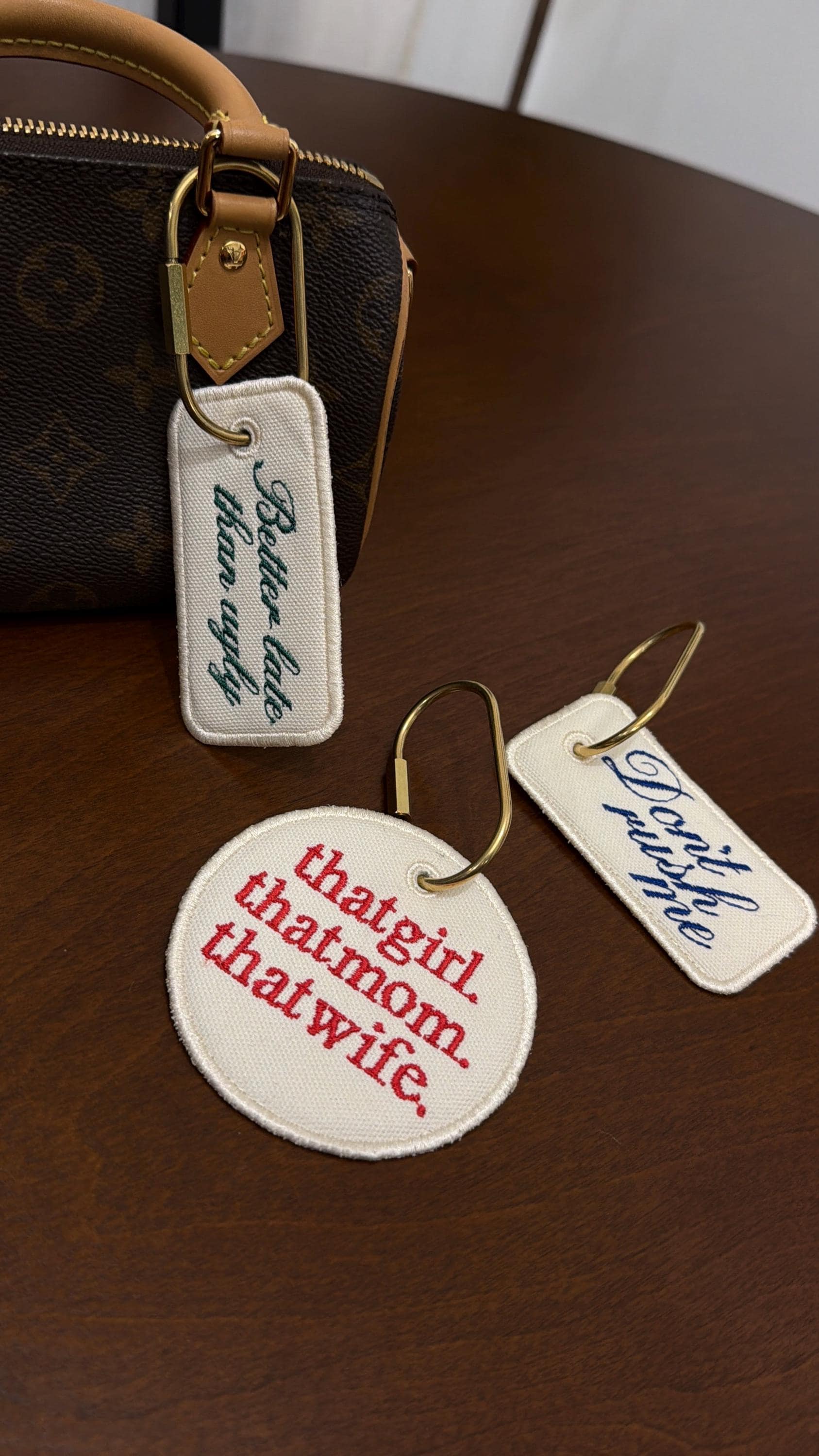 Add personality to your bag or keys with these embroidered canvas tags — the perfect mix of practical and cute.
