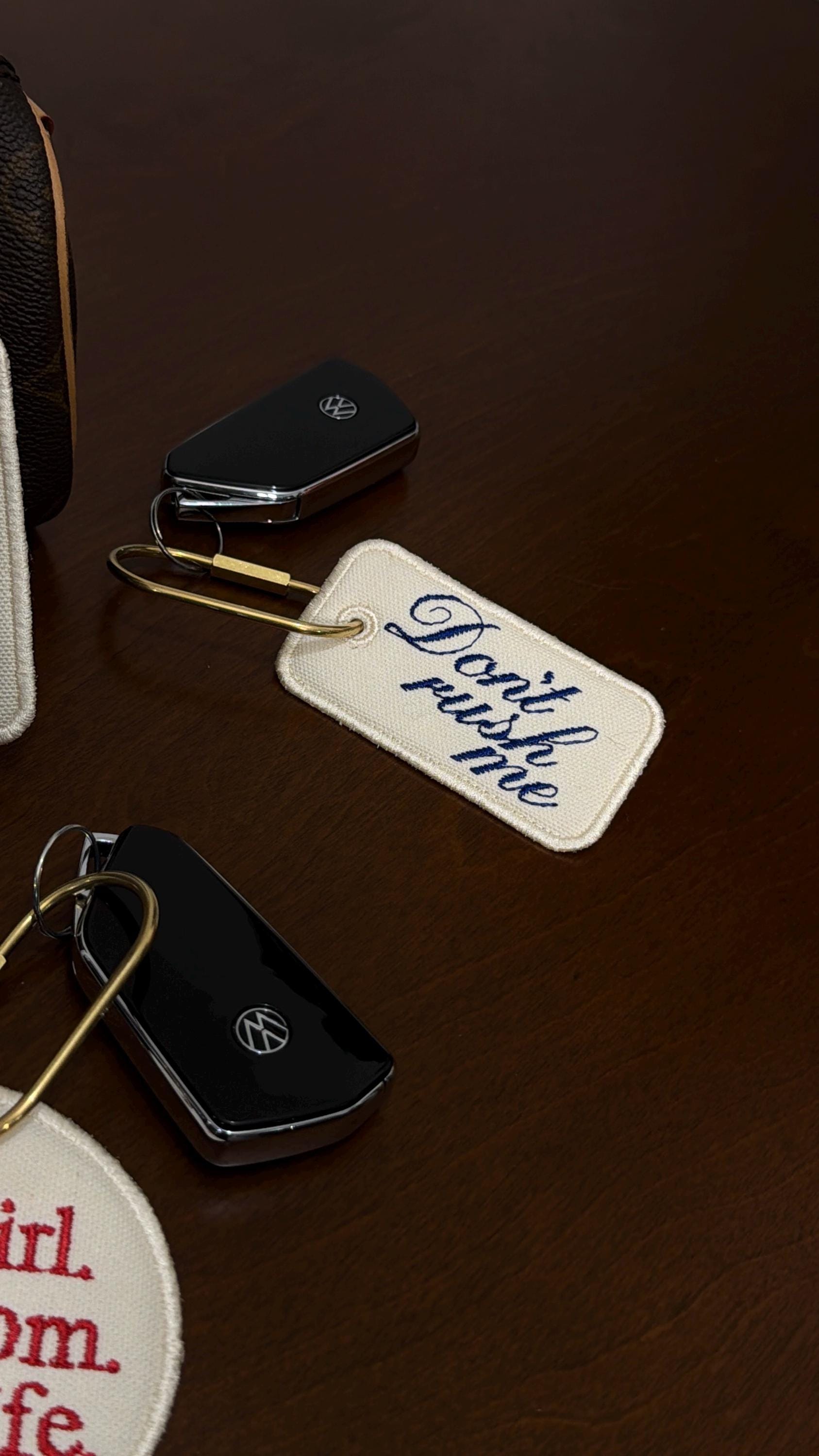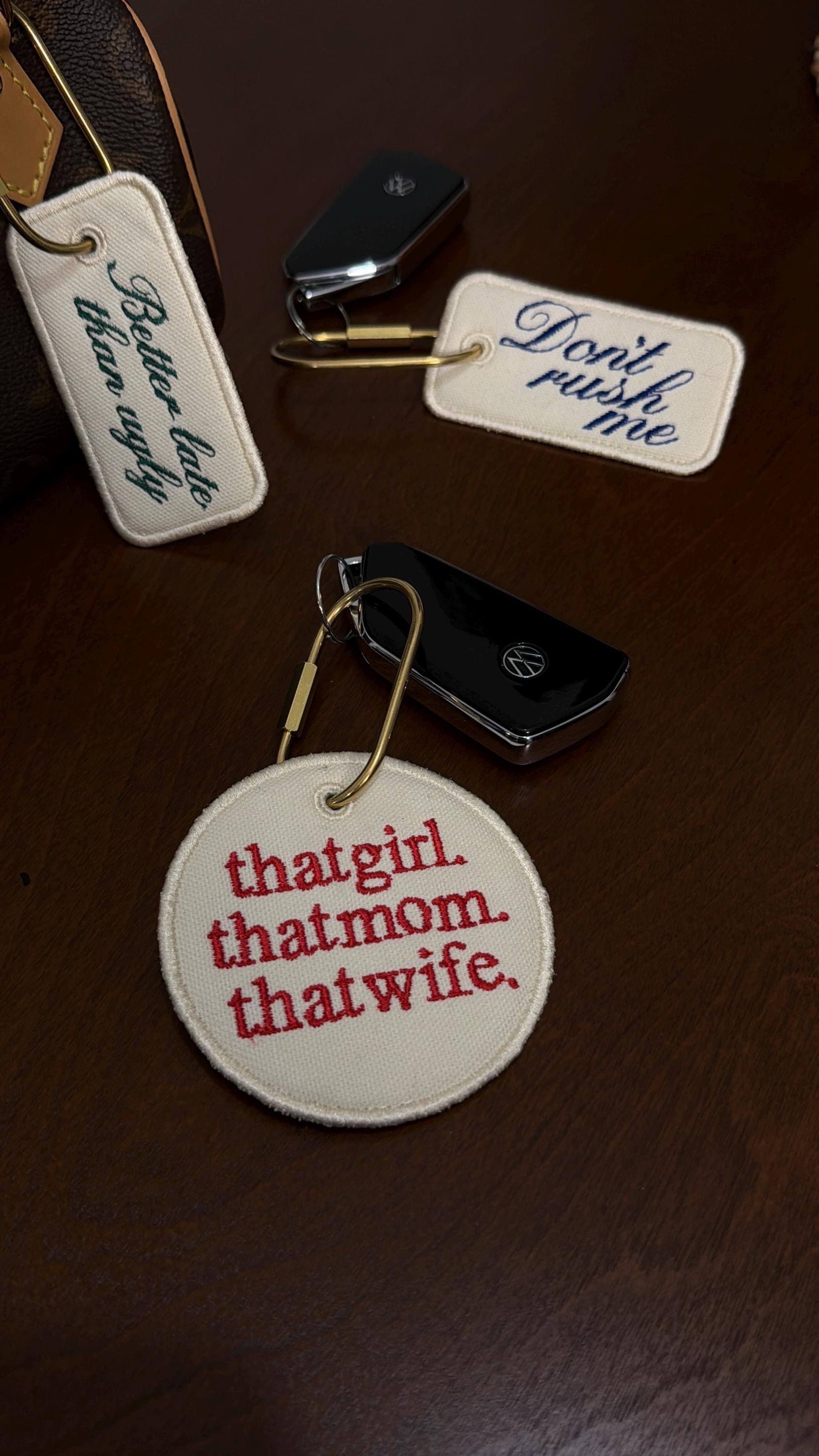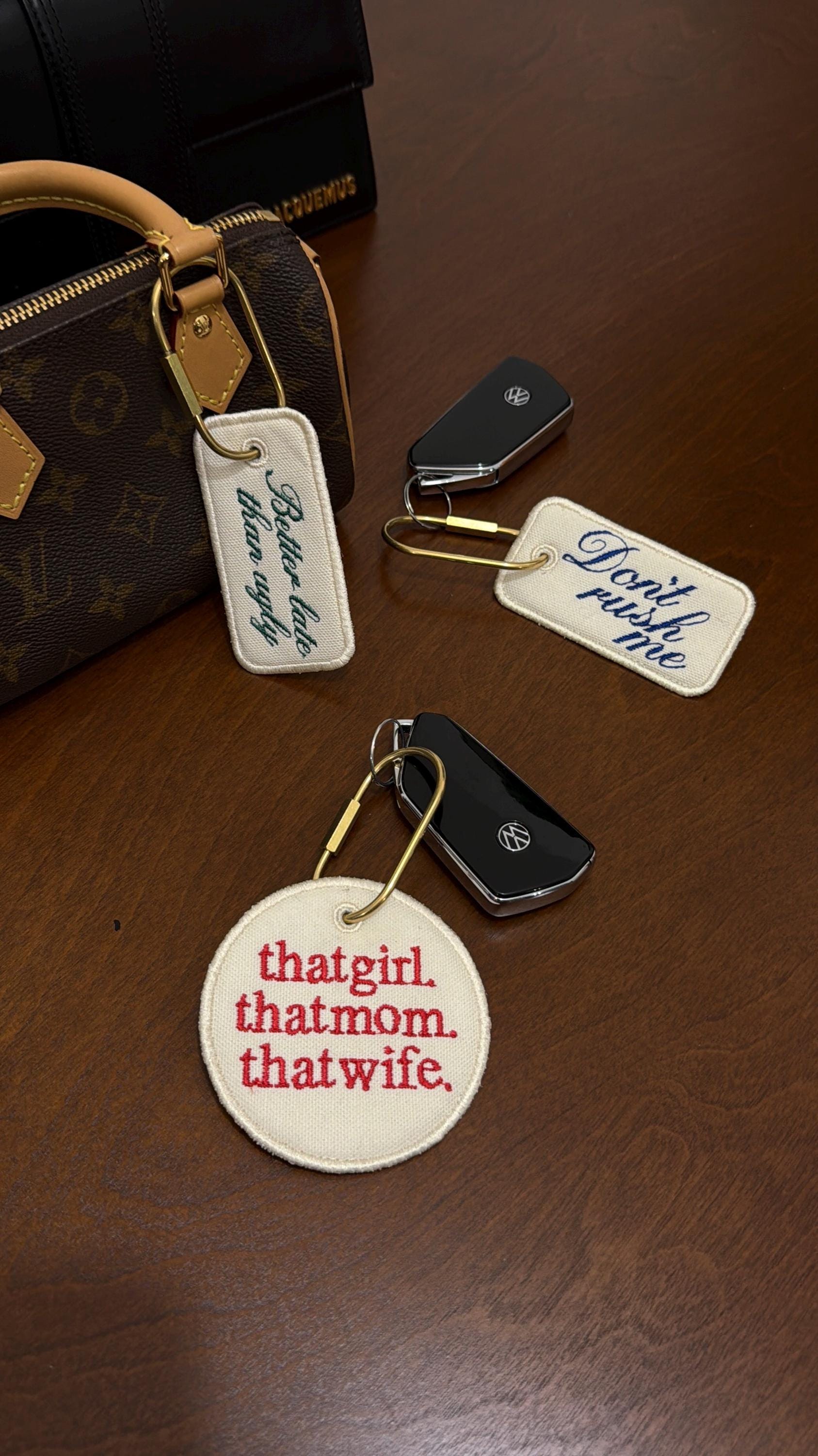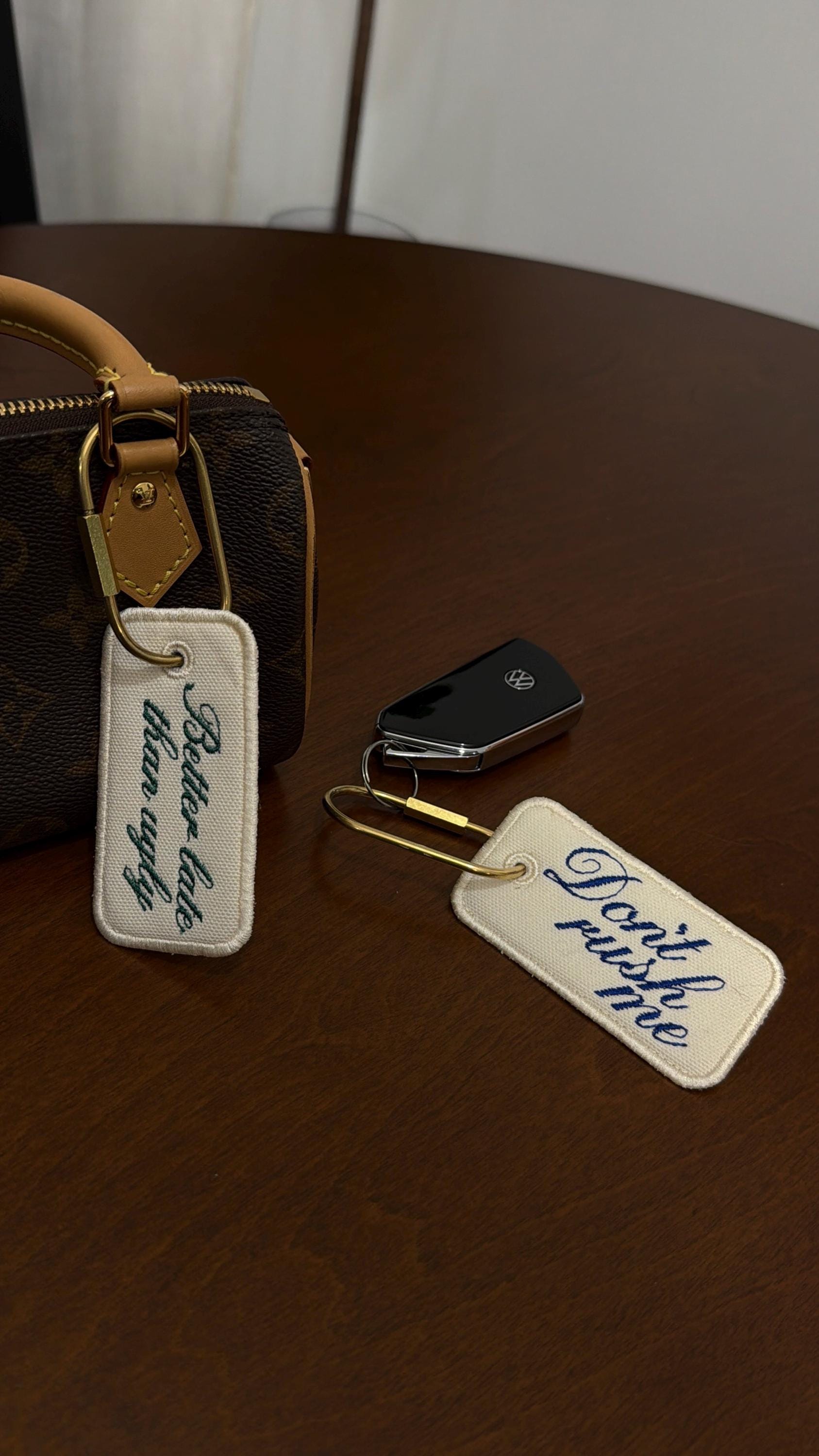 Custom Embroidered Bag Tag Keychain, Canvas Luggage Tag, Aesthetic Quote Keychain, Travel Bag Charm