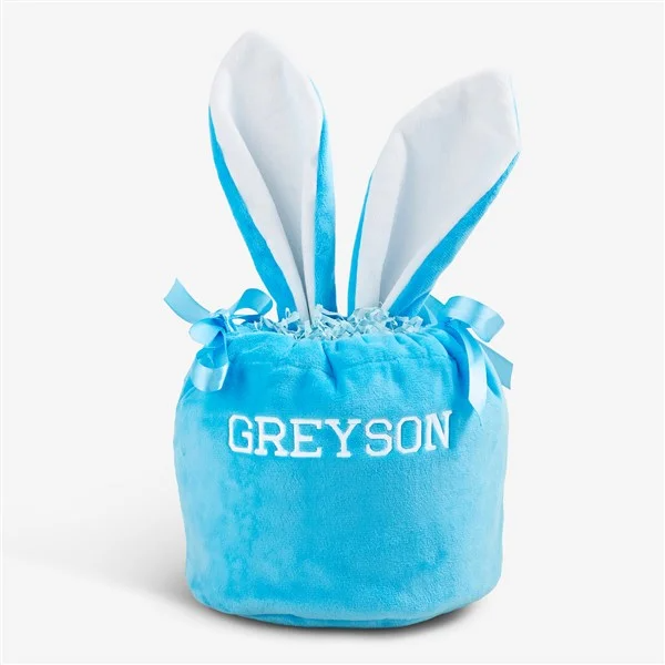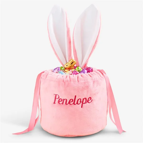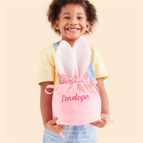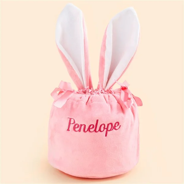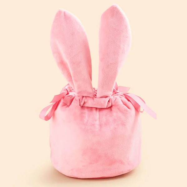 Mini Bunny Ears Embroidered Velvet Drawstring Easter Treat Bag