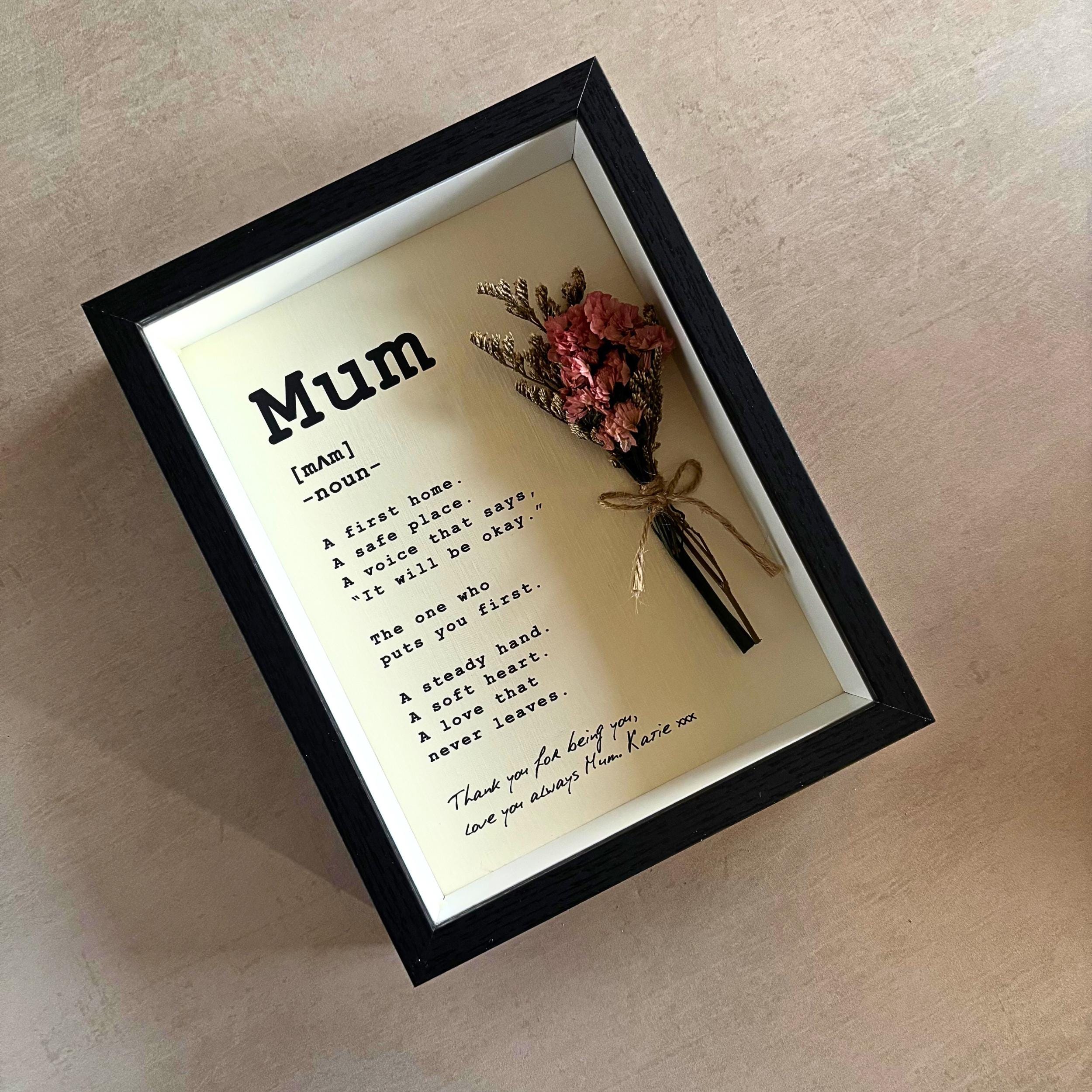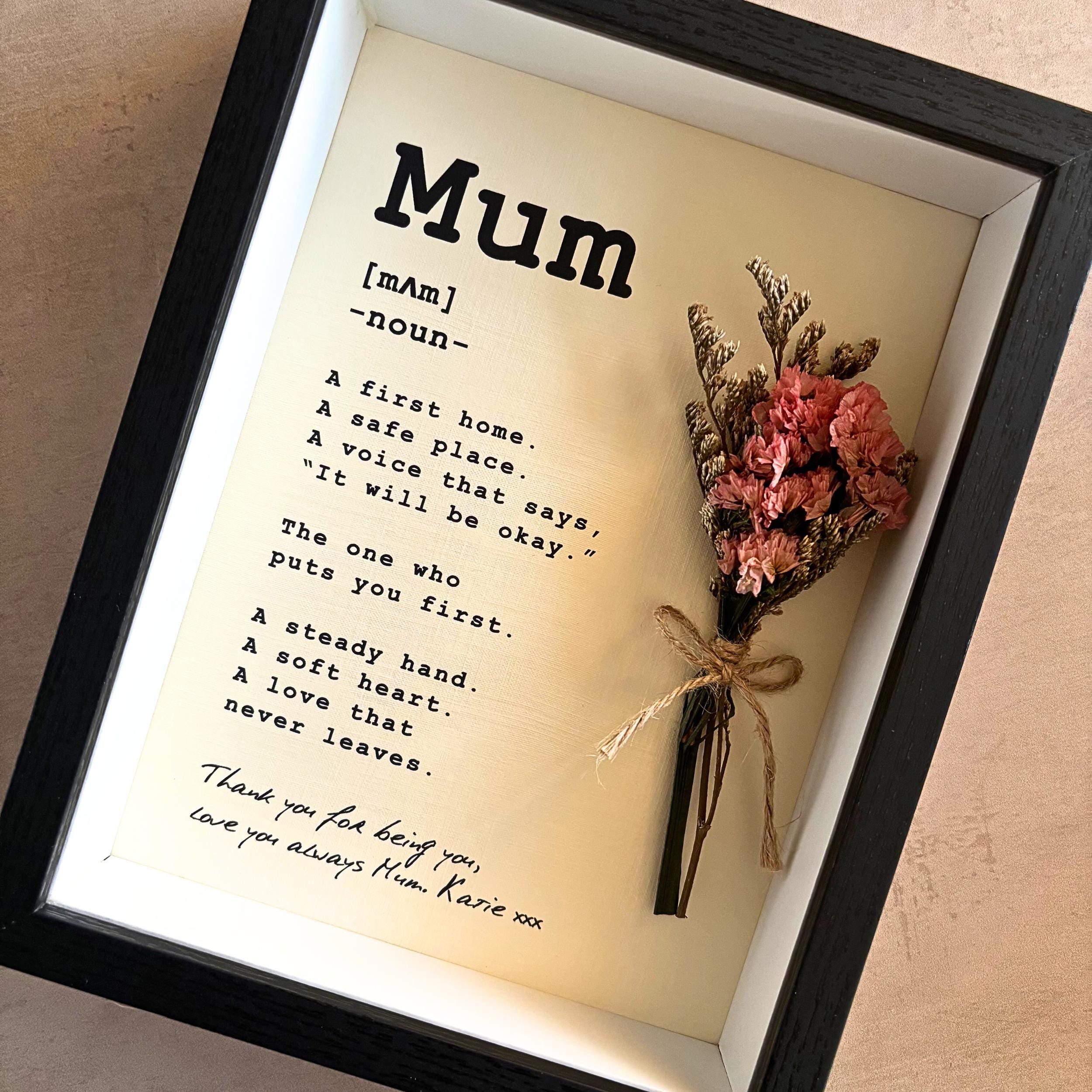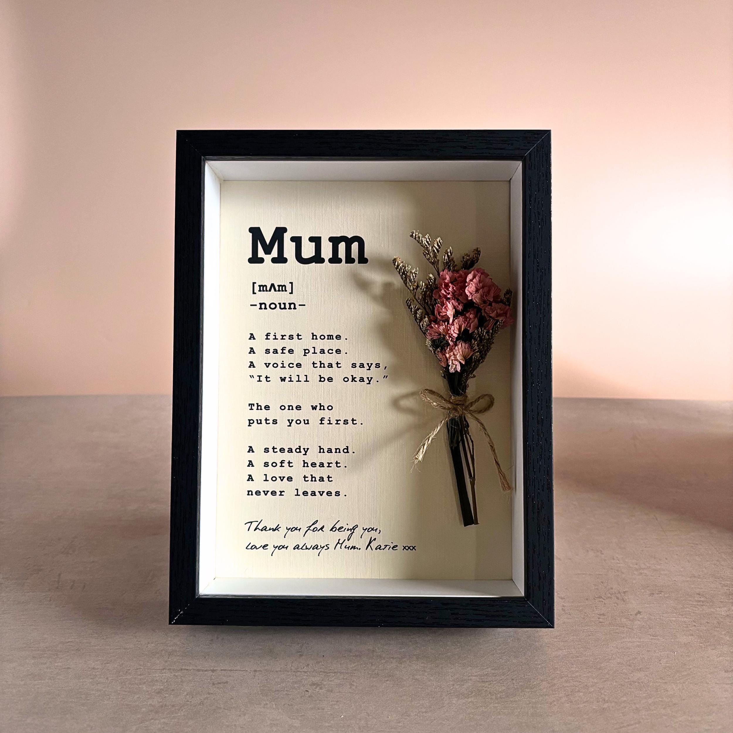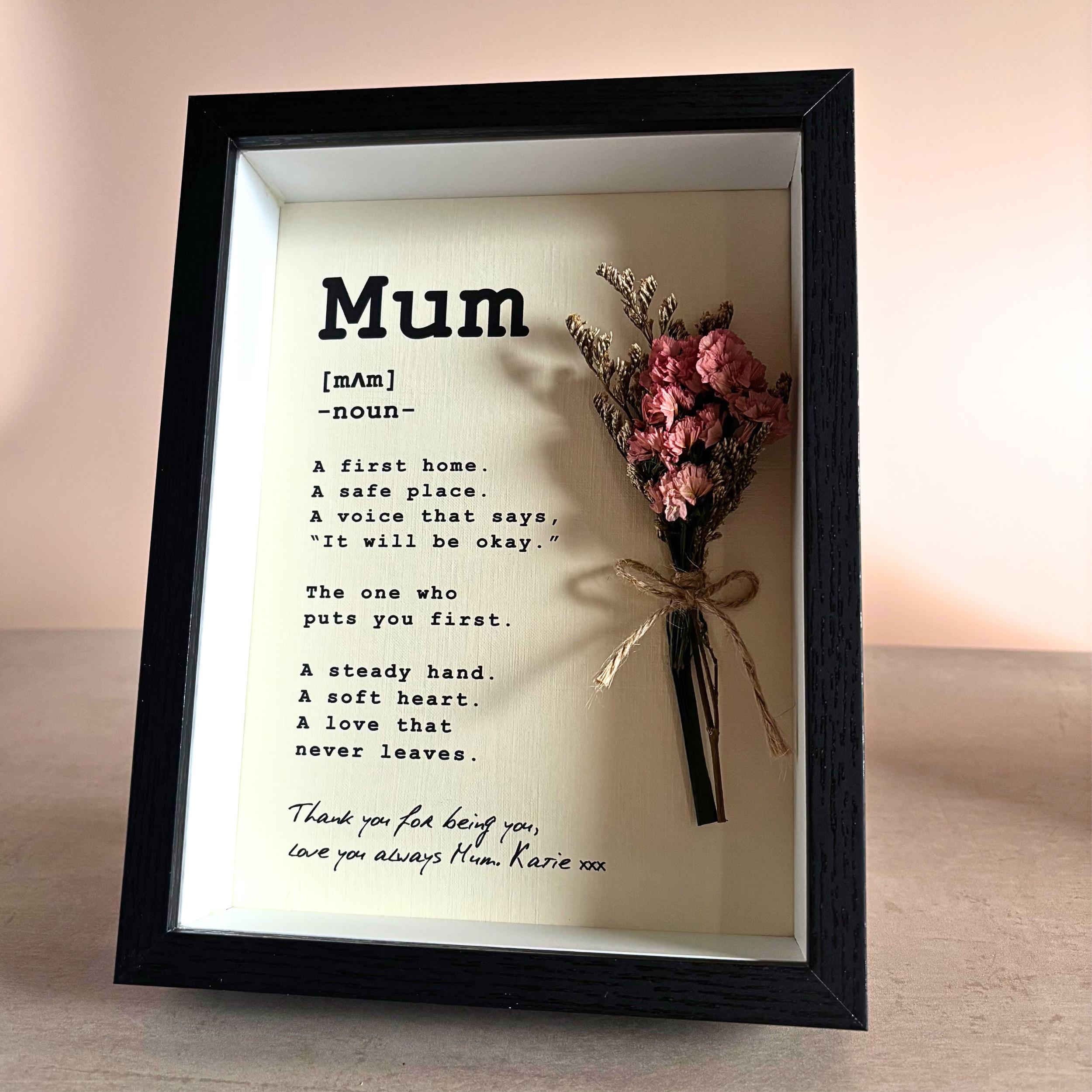 Personalised Mum Definition Frame, Framed Mothers Day Gift with Dried Flower Bouquet
