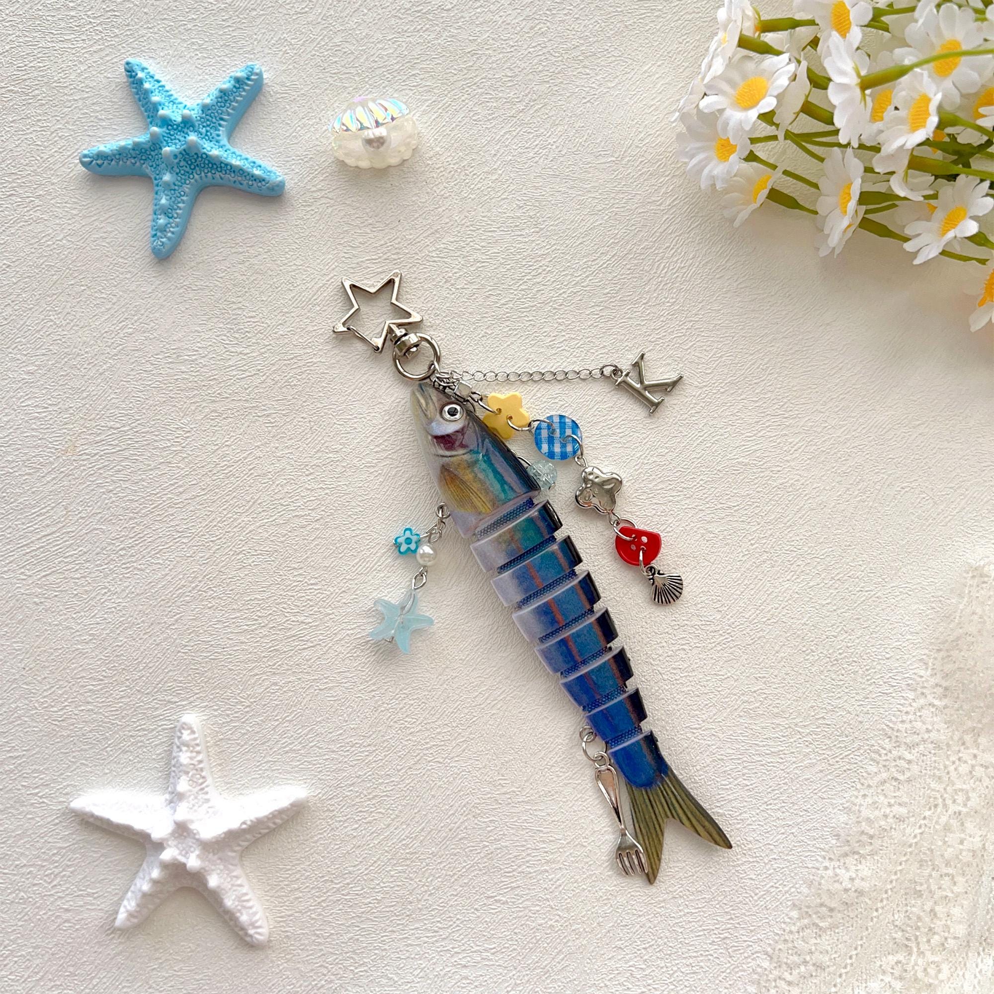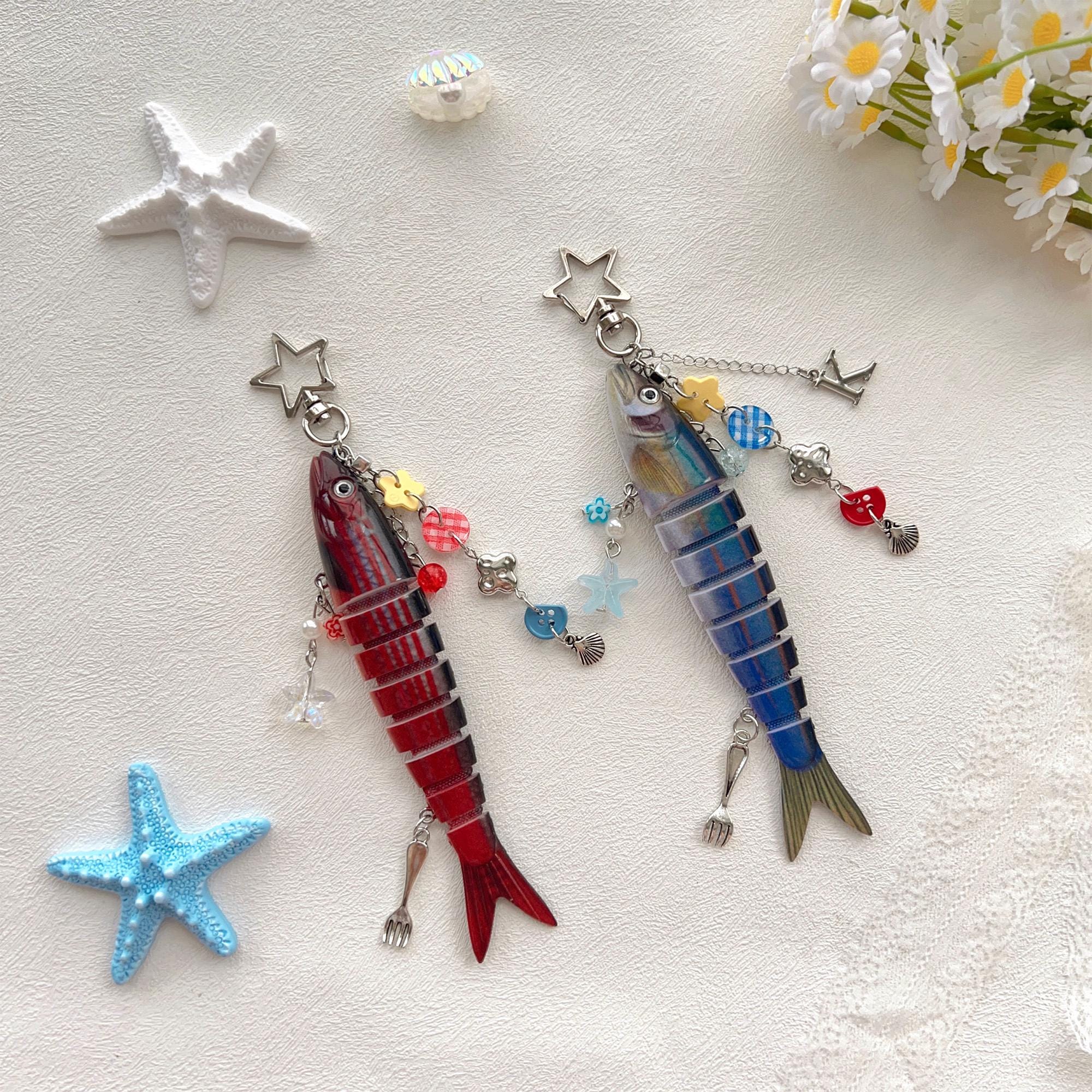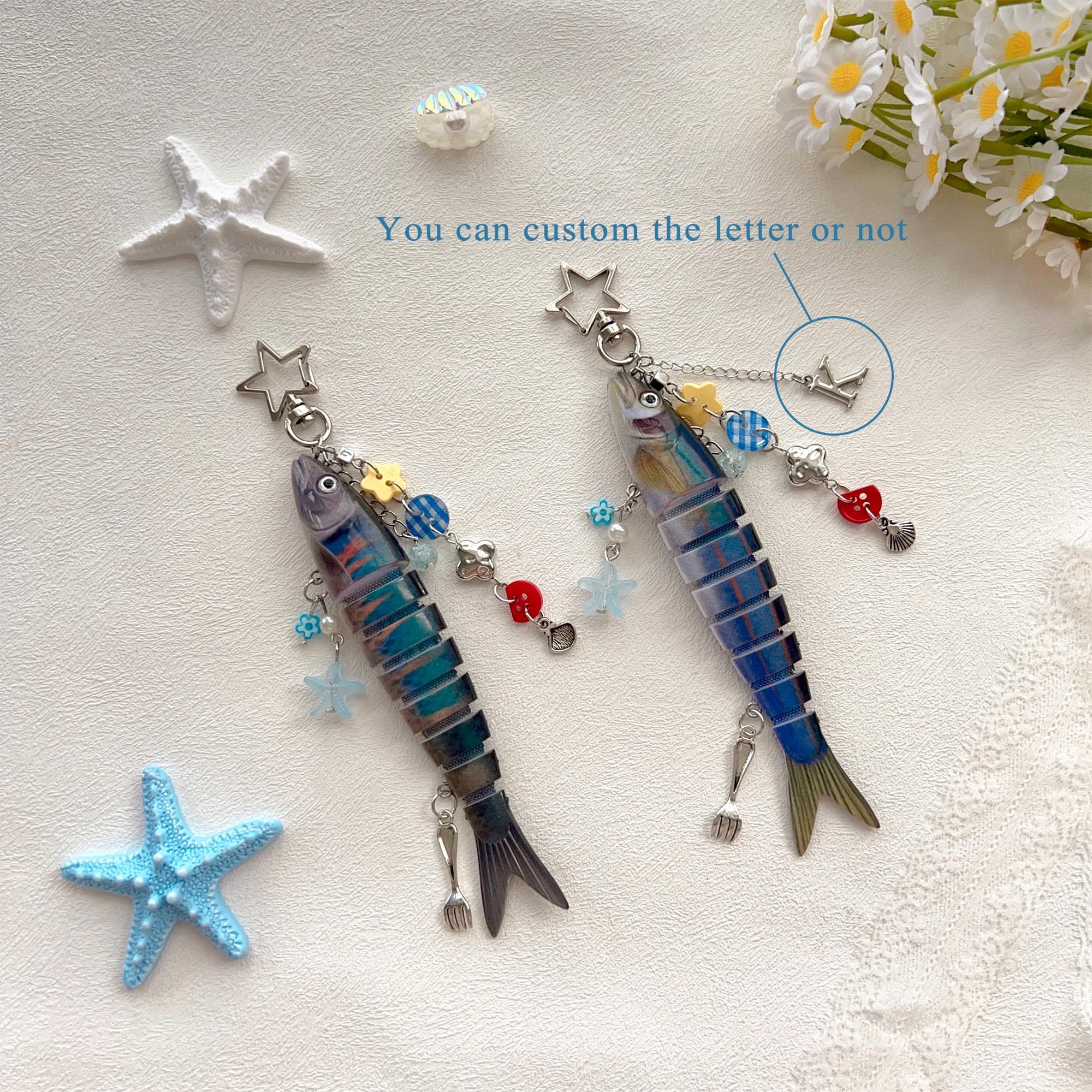 Personalized Fish Keychain with Letter, Y2K Fish Charm Bag Decoration, Cute Fish Lure Key Chain, Handmade Fishing Key Holder, Unique Gift
