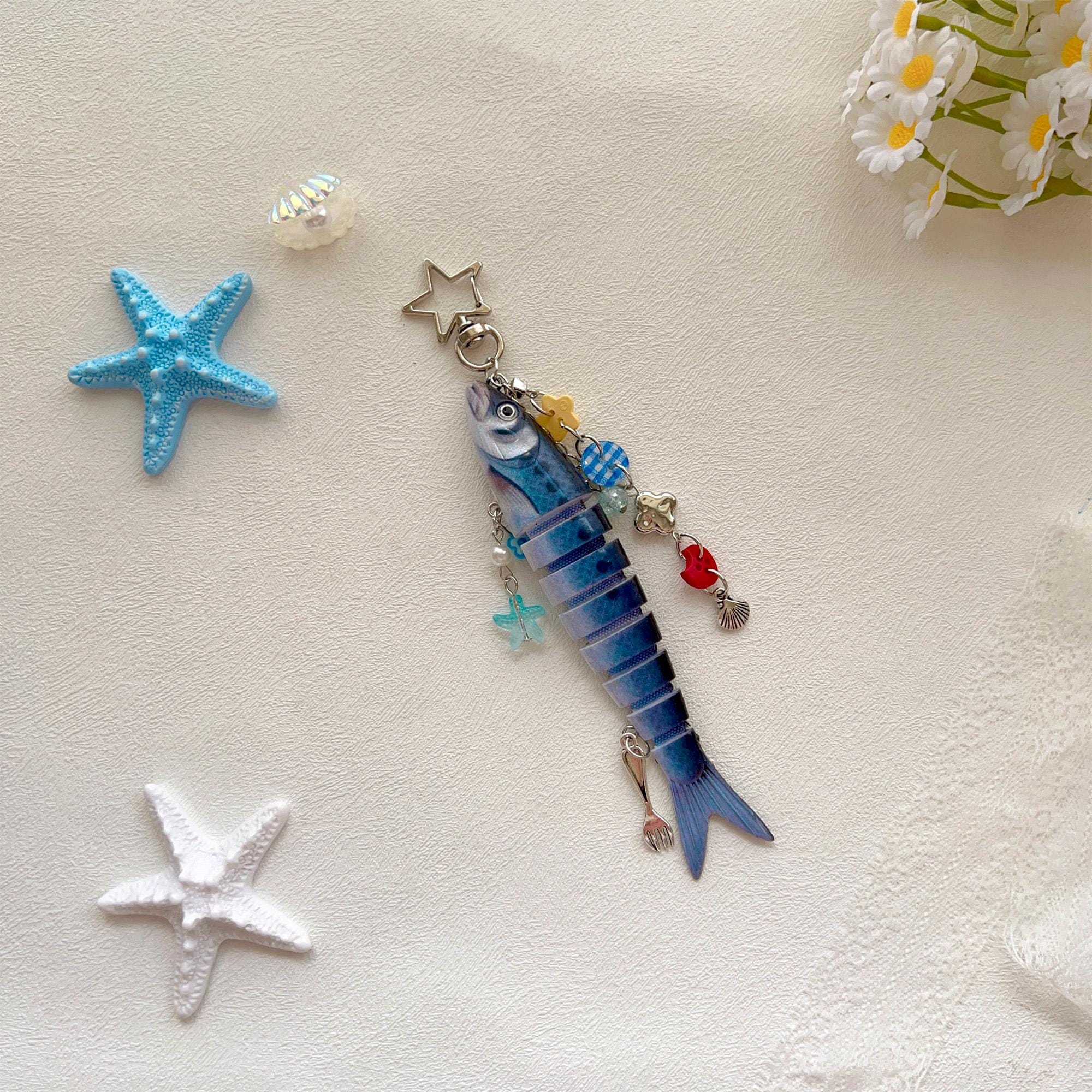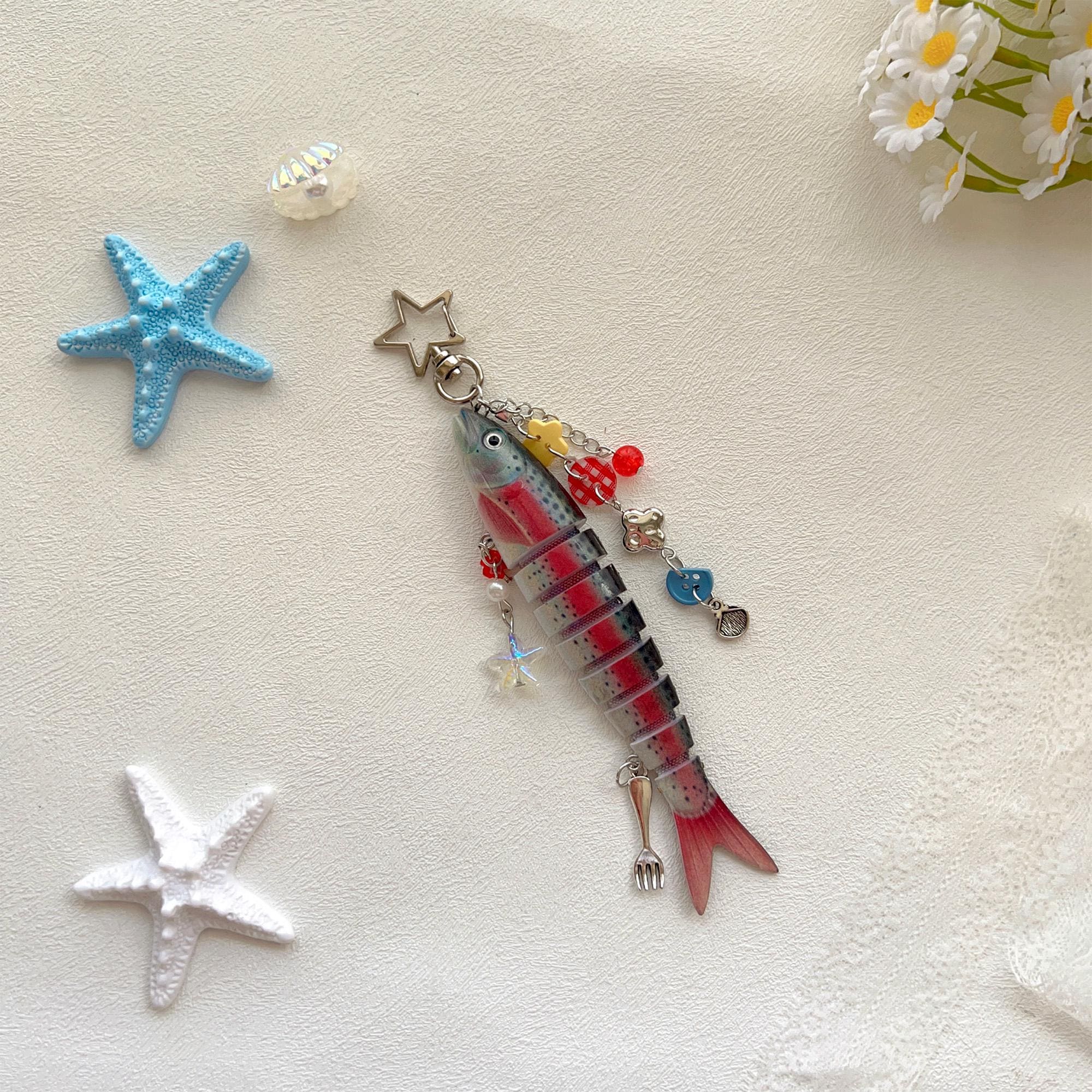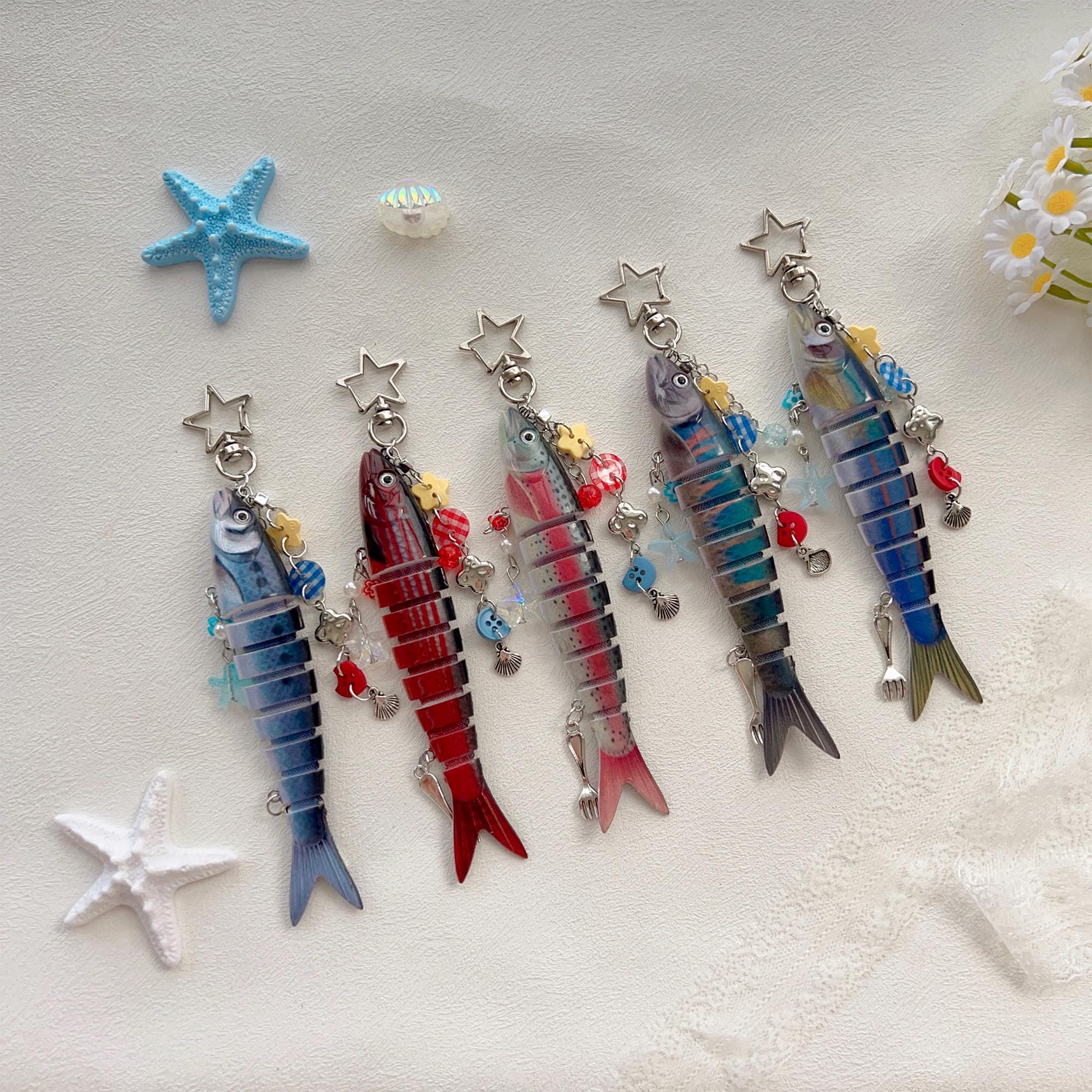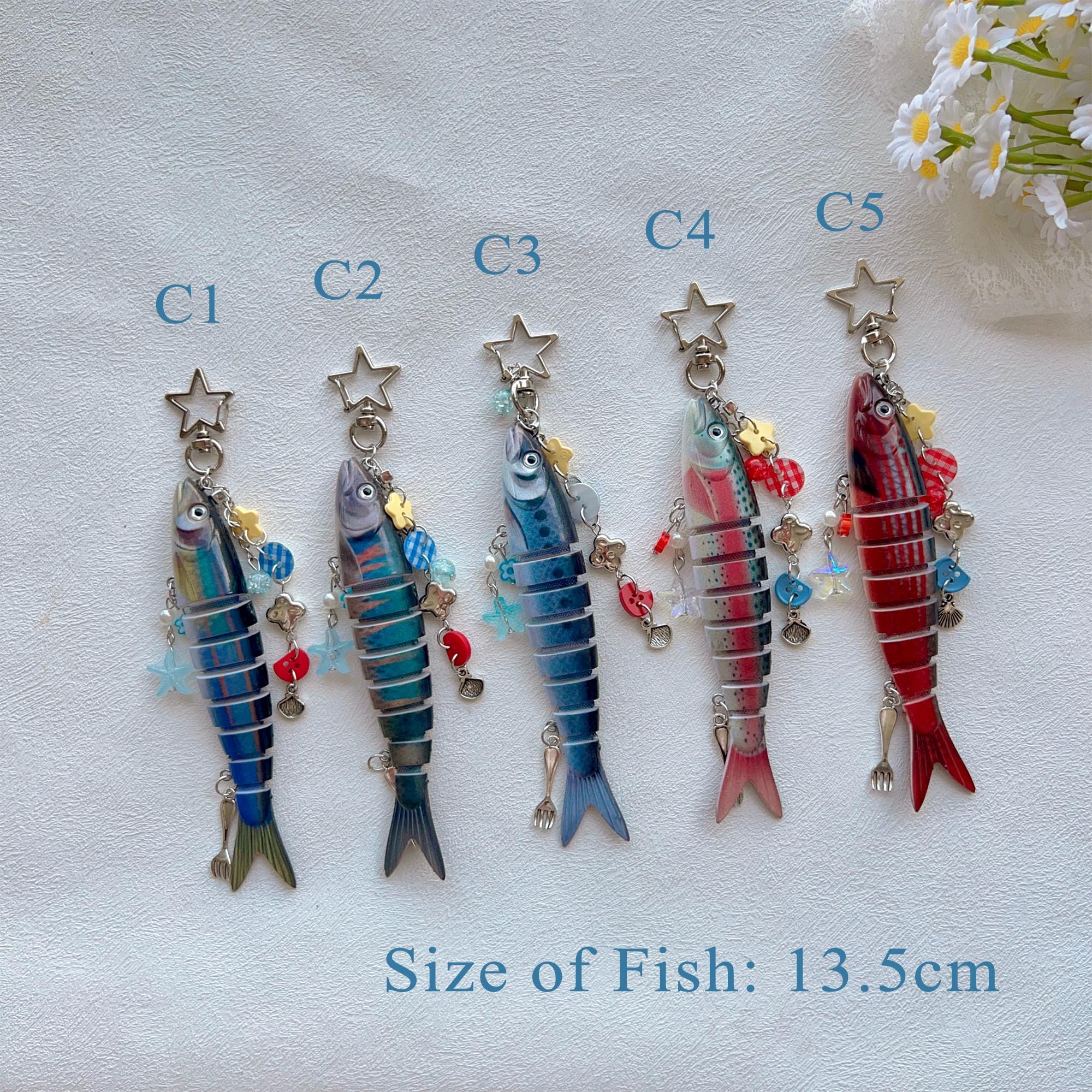 Personalized Fish Keychain with Letter, Y2K Fish Charm Bag Decoration, Cute Fish Lure Key Chain, Handmade Fishing Key Holder, Unique Gift