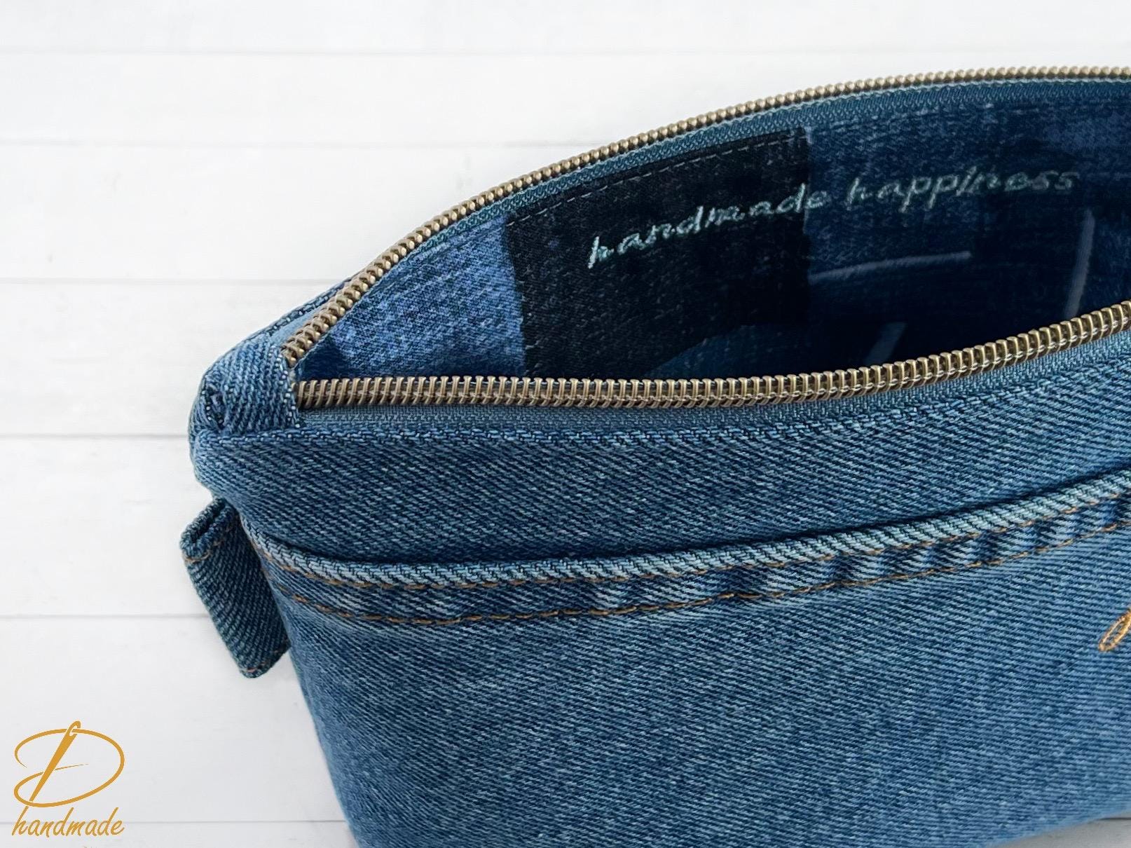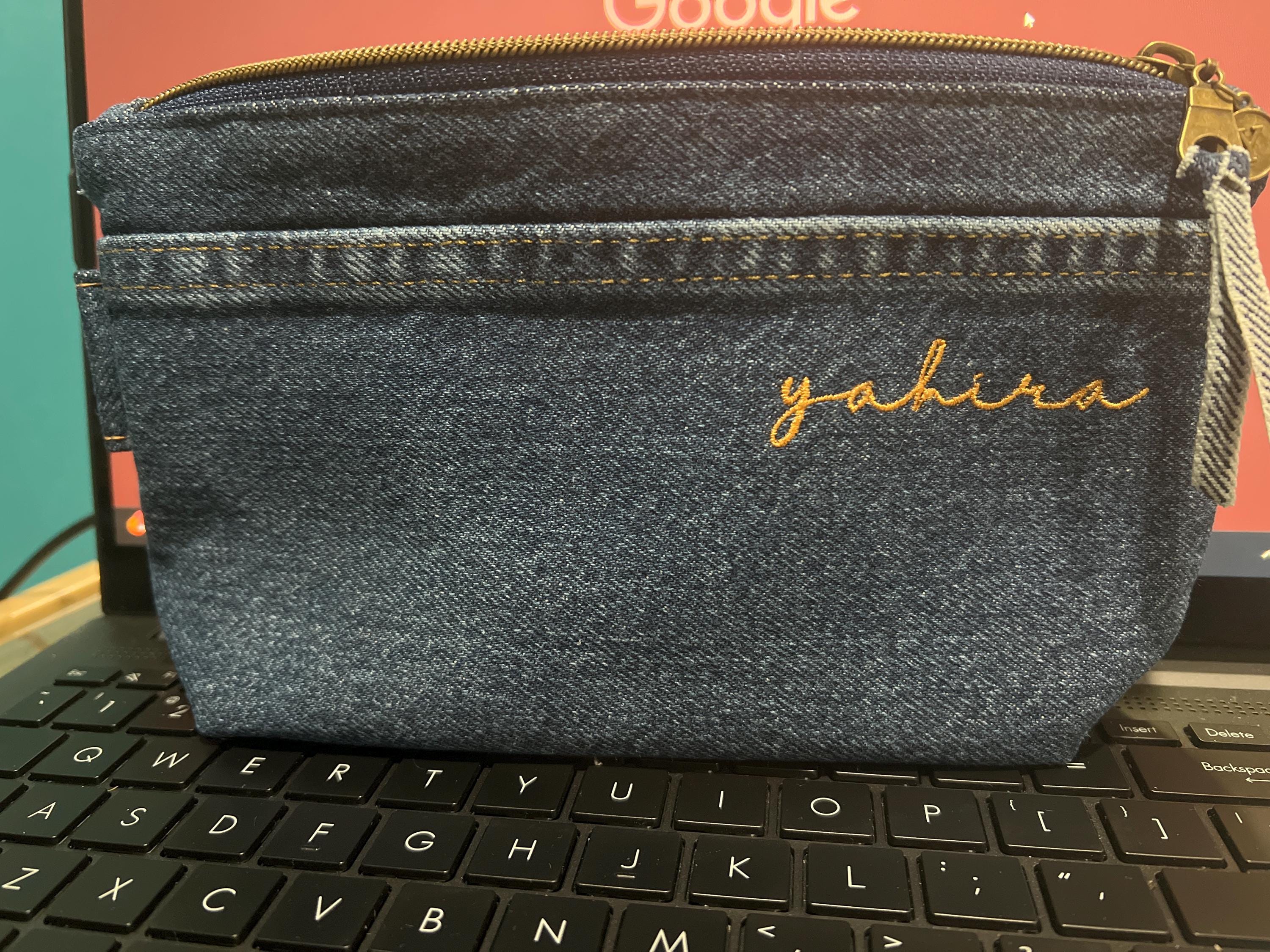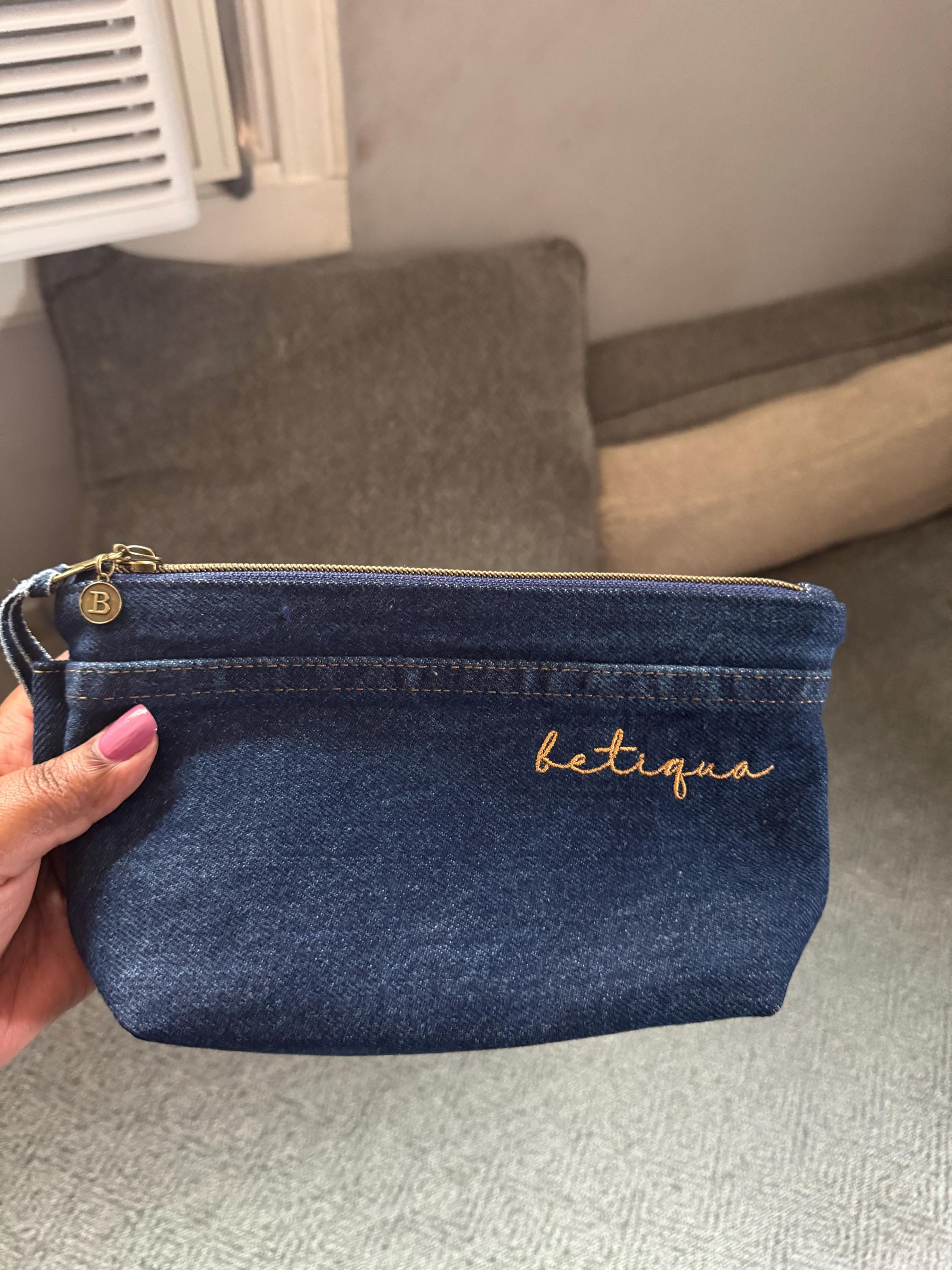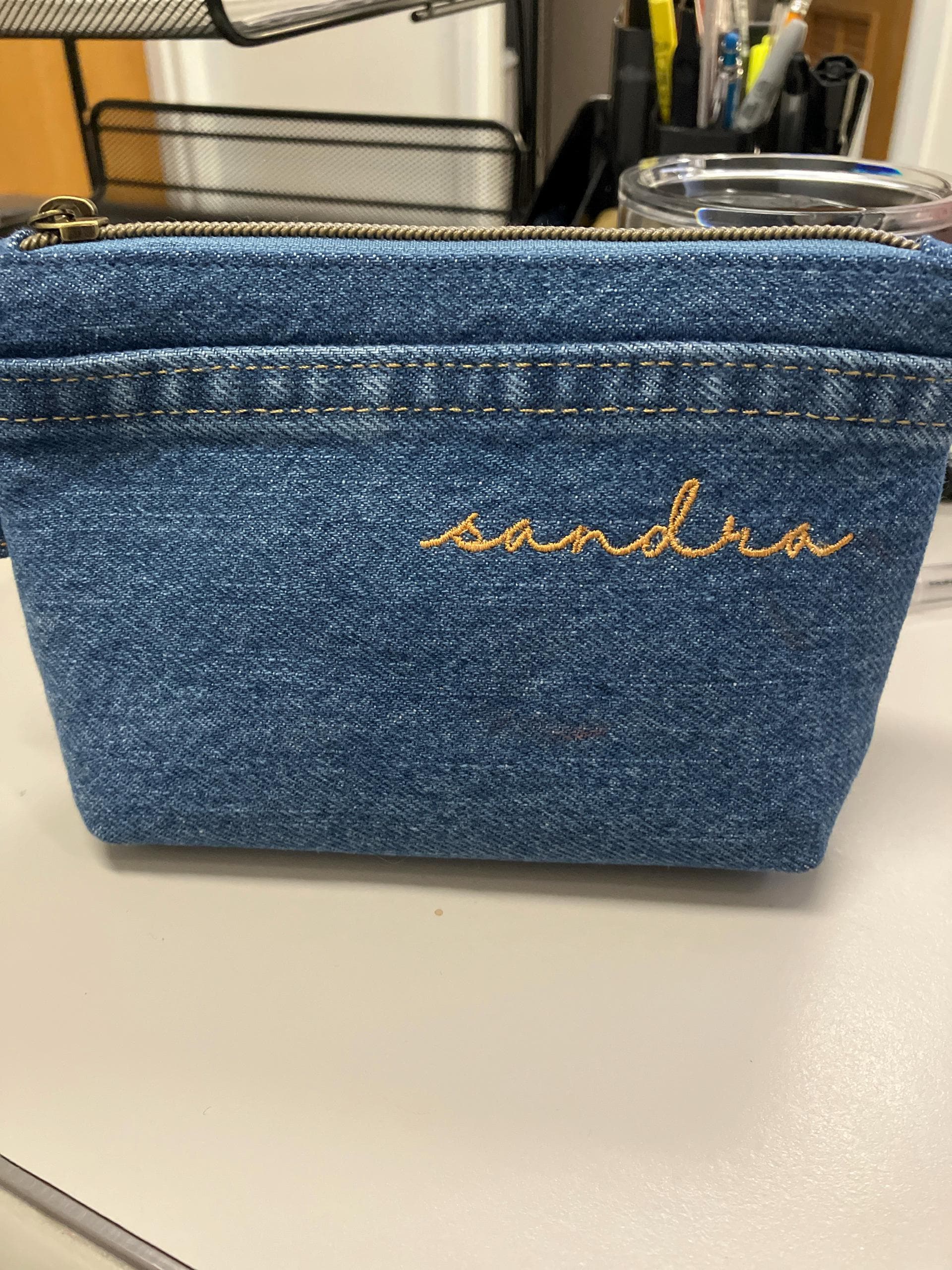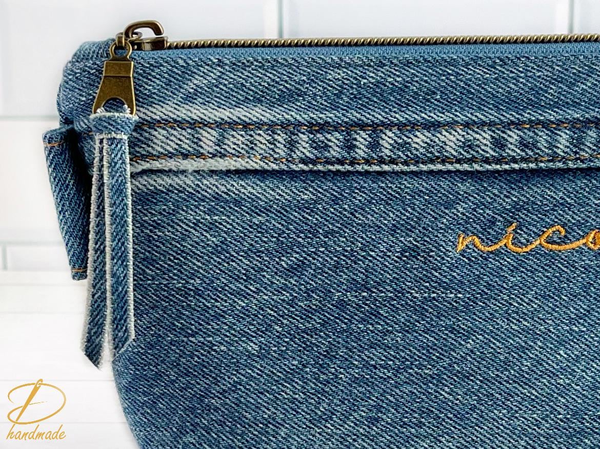 Personalized Upcycled Denim Zipper Pouch: Embroidered Makeup Bag Made From Real Jeans